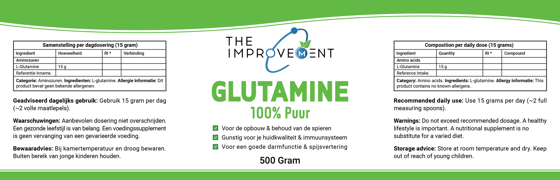 Our Glutamine helps you accelerate muscle recovery, support your immune system, and improve your gut health. Whether you're training for your personal goals or simply want to ensure your body performs at its best, this powerful formula is exactly what you need to push your limits. Give your body the support it deserves, so you can be stronger every day.