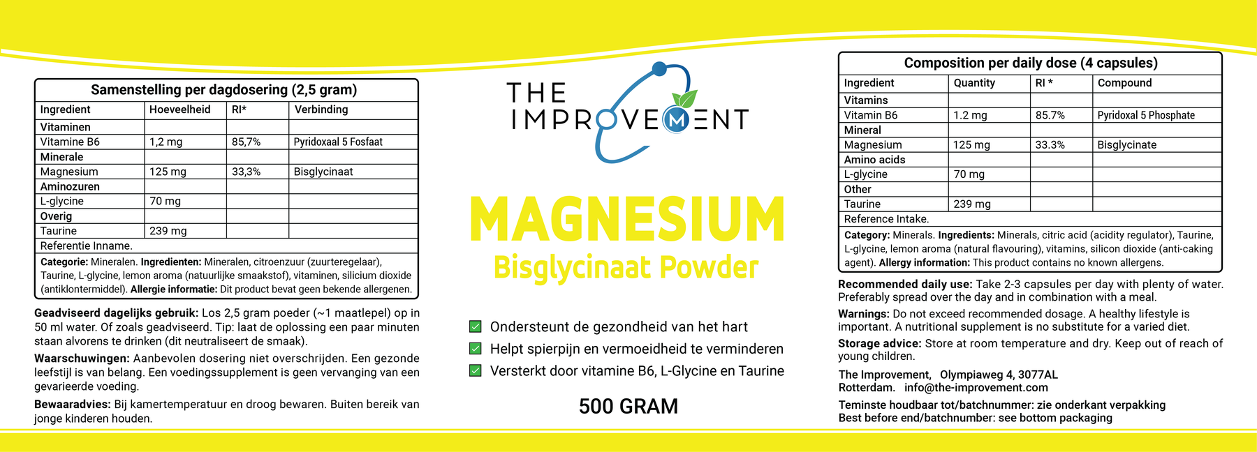 Are you looking for a natural way to support your body? Magnesium Bisglycinate Powder is the ideal solution for anyone looking to improve their muscles, nerves, and overall well-being. Perfect for busy professionals, athletes, and anyone who needs rest and recovery after a long day. Give your body what it deserves and experience the difference!